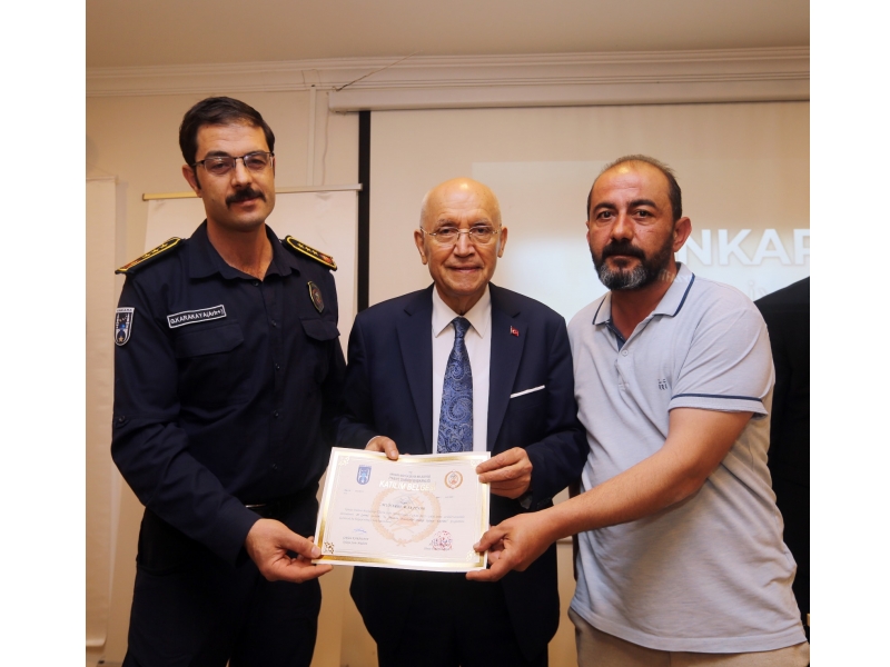 İtfaiye personeli katılım belgelerini Birlik Başkanımız Sn.Fethi Yaşar´ın elinden aldılar. Başkanımız eğitime katkılarından dolayı Ankara Büyükşehir Belediye Başkanı Sn.Mansur Yavaş ile İtfaiye Daire Başkanı Sn. Ali levent Çeri ve Eğitim Şube Personeline