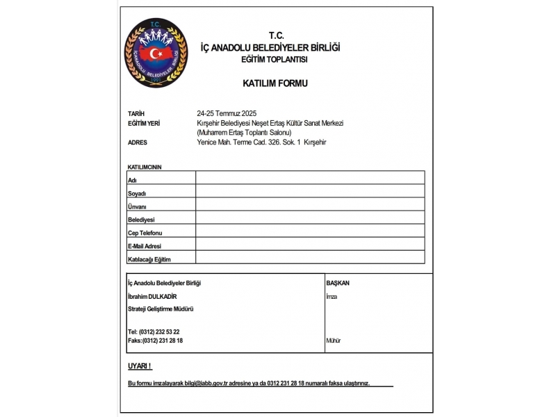 Bu kapsamda Birliğimize üye; Kırşehir,Kırıkkale,Yozgat Nevşehir ve Aksaray il, ilçe ve belde belediyelerine yönelik olarak verilecek ‘’Performans Esaslı Program Bütçe Hazırlık Eğitimi’’ ile ‘’ Kamu İhale Kanunu Uygulamaları eğitimi’’ 24-25 Temmuz 2025 tarihinde saat 09.30 – 17.00 arasında Kırşehir Belediyesi Neşet Ertaş Kültür Sanat Merkezi toplantı salonun’da gerçekleştirilecektir.