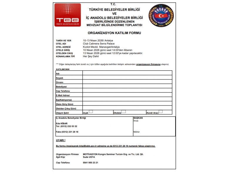 Söz konusu toplantıya ilişkin katılım formunu doldurup en geç 31 Mart 2026 Salı günü Saat:17.00’ a kadar Birliğimize iletmenizi;